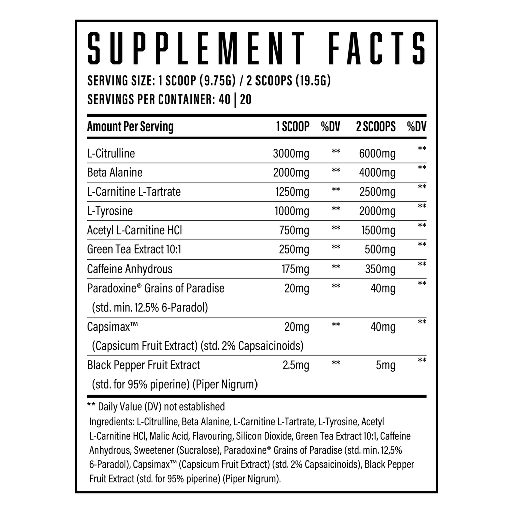 In totaal 10 hoogwaardige ingrediënten voeden onze krachtige formule. Het bevat doseringen L-Citrulline, L-Carnitine Tartrate, Acetyl-L-Carnitine, Paradoxine® en nog veel meer belangrijke verbindingen.